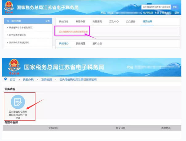 µÇ¼¡°¹ú¼Ò˰Îñ×ֽܾËÕÊ¡µç×Ó˰Îñ¾Ö¡±£¬ÔÚÊ×Ò³ÓÒÉϽǡ°ËÑË÷¿ò¡±ÖÐÊäÈë¡°¶ªÊ§Ôöֵ˰רÓ÷¢Æ±Òѱ¨Ë°Ö¤Ã÷¡±£¬µã»÷ËÑË÷¡£